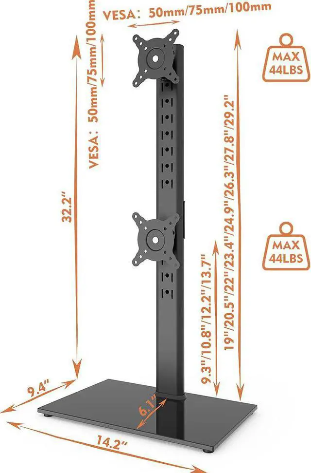 Hold 2 monitors on 1 single stand in vertical array, clearing up much valuable space on the desk and making your desktop spacious and tidy.