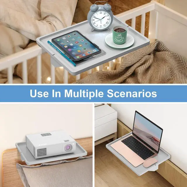 The Bedside Shelf will fit on your side of the bed. Use it for holding chips & dip while watching TV, it easily attaches to any couch. Also doubles as a sturdy iPad, Kindle, Nook, or tablet stand. Viewing angle perfect for tables/ counters/airplane trays. It is a must have accessory if you watch video or read on your iPad/tablet.