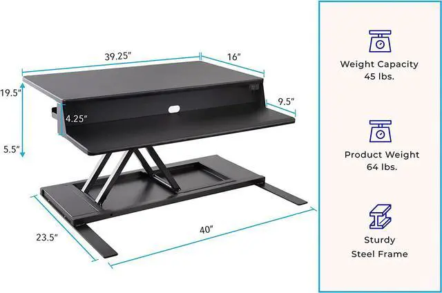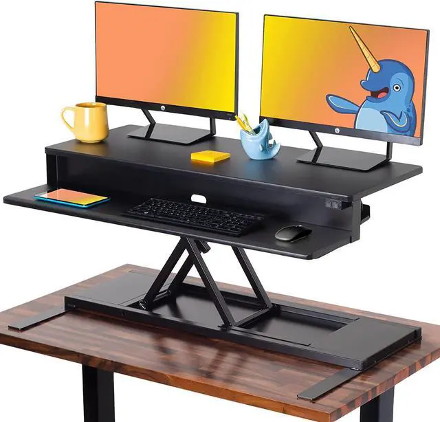 TWO LARGE SURFACES: With a spacious keyboard level and monitor level youll have one ergonomic desk solution! Our FlexPro Powers can fit your two monitors, your laptop, keyboard, mouse, tablets, snacks, collection of bobble heads, and MORE!