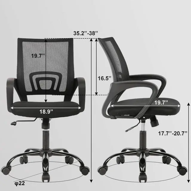 Quality Material - All the accessories of our office chair have passed the test of BIFMA, which is a guarantee for your personal safety. The mesh chair can bear the weight of 250lbs.