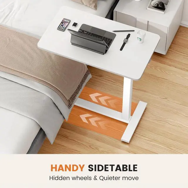 Adjustable Height: The overbed table features a gas spring pneumatic lift system, allowing effortless height adjustments from 29.53" to 43.31". Effortlessly adjust the height to fit any bed or chair. Perfect for eating, working, or reading in bed, this overbed table is ideal for home, hospital, or office use