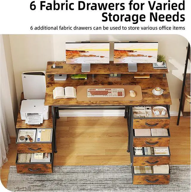 Computer Desk with 6 DrawersThis home office desk features 6 spacious fabric drawers. The drawers glide smoothly for effortless access, conveniently storing stationery, documents, and daily essentials to keep your desktop tidy and organized. Enjoy a spacious and clutter-free workstation with ease
