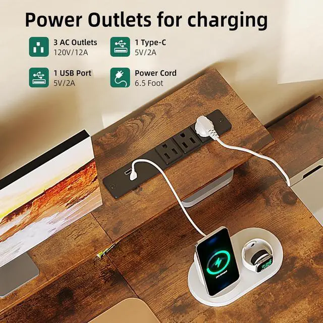 Office Desk with Power OutletsThis computer desk is designed with the user's convenience in mind. Built-in power outlets with 3 standard plug outlets,1 USB ports and 1 Type-C port can meet the needs of different equipment