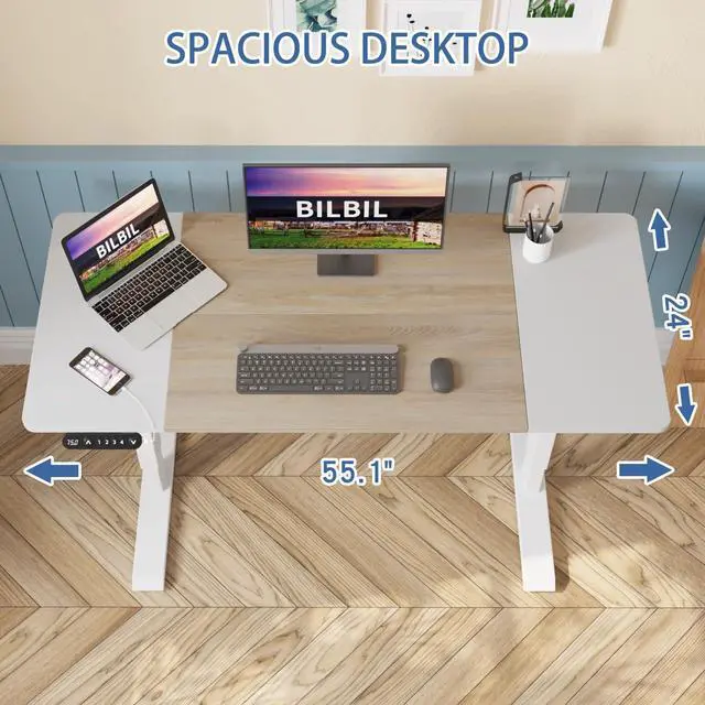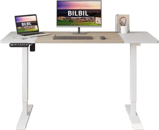 bilbil Height Adjustable Electric Standing Desk, 48 x 24 Inches Sit Stand up for Work Office Home, Ergonomic Rising Computer Table with Memory Preset with Splice Desktop (Oak)