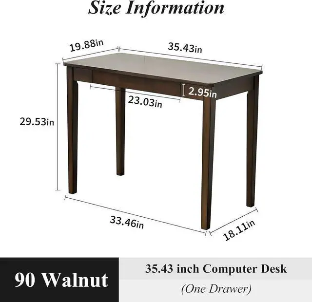 Solid Wood Computer Desk with Drawers, Modern Writing Desk for Home Office, Mid Century Modern Desk, Oak Study Table, 35.4x19.9x29.5 inches (Single Drawer), Walnut
