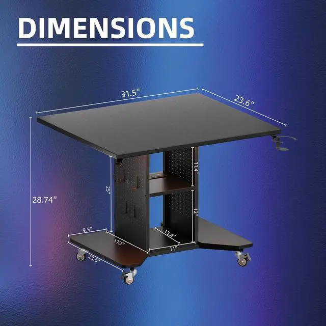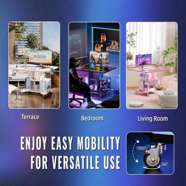 Mobile Design : This small gaming desk is equipped with 4 caster wheels2 lockable and 2 swivel wheelsfor easy movement and versatile use. You can effortlessly move it around your home to suit your needs. Ideal as a gaming desk, side table, kitchen table, or sewing table.
