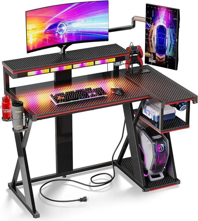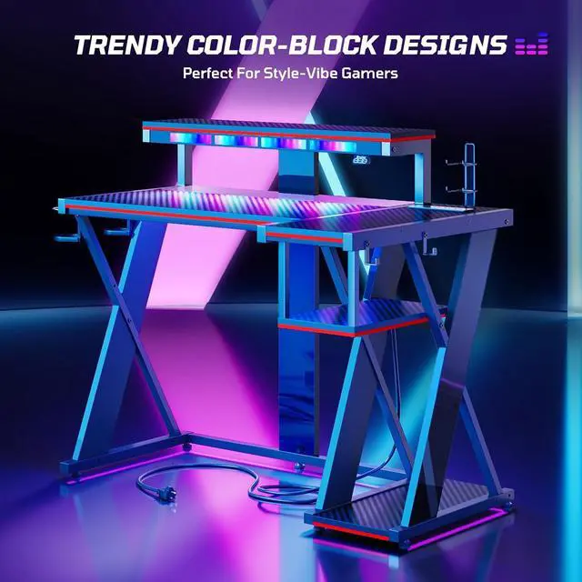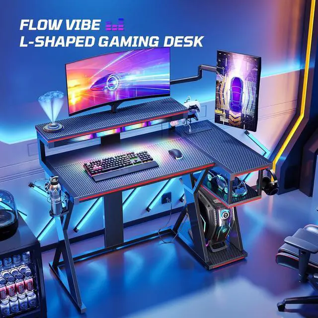 Durable Steel Frame & Trendy Color-Block Designs: The storage shelves can meet the requirements of your computer tower, PS5 or other gaming setup. The corner gaming desk frame and X designs are made of durable steel, providing the highest level of support, stability, and long-lasting durability to the desk for gaming