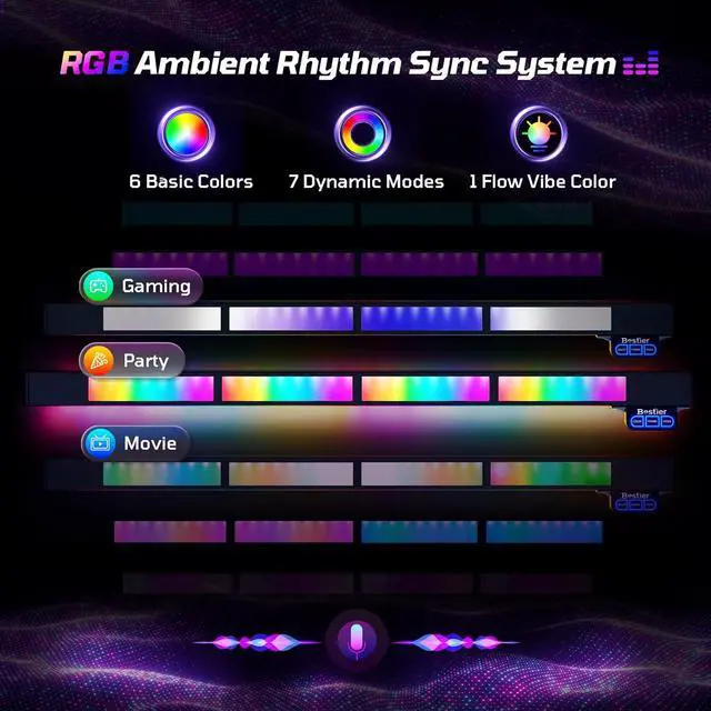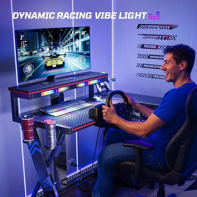 Upgraded Music Sync LED System: The light can move and flow to the beat of your racing game, music, and gaming audio. With 6 colors and Flow Vibe multi-color available through 7 dynamic modes, personalize your ambient lighting to match any mood you desire