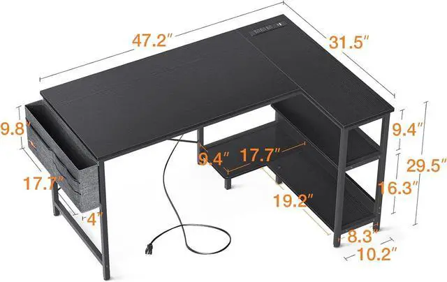 Reversible Corner Desk for Small SpaceThe l desk fits perfectly any places in a corner, which maximize your limited spaces. This modern minimalist desk will be a beautiful decor in your living room, bedroom, office, dormitory, gaming room, childrens room. You can customize the shelves on your left or right follow your personal habits.