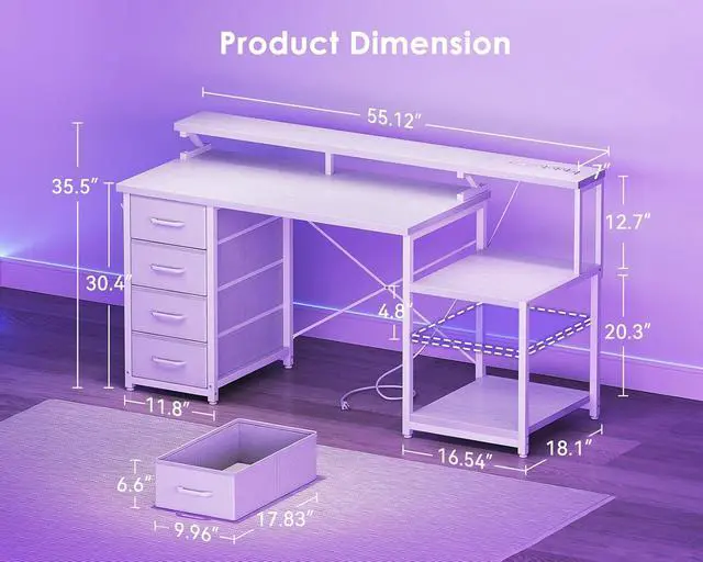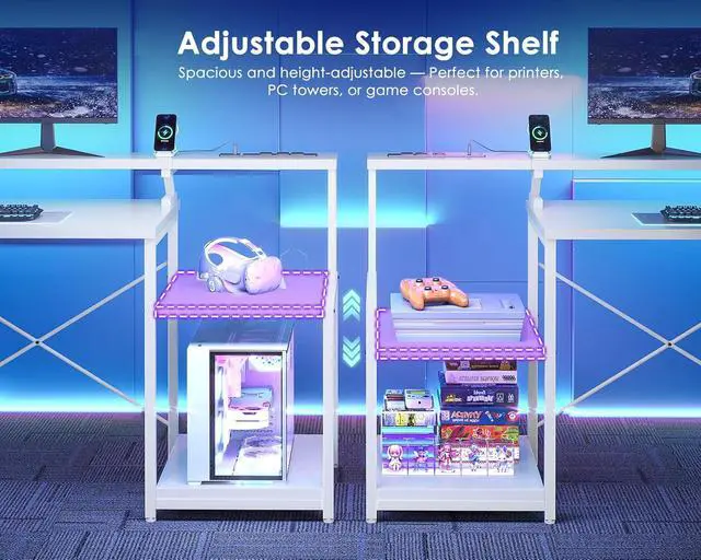 Versatile Application Scenarios:Perfect for diverse user needs, this multifunctional desk serves as an ideal centerpiece for home offices, providing structure for remote work. Gaming enthusiasts benefit from the dual monitor support and ambient lighting for immersive experiences. Creative professionals appreciate the organized storage for projects, while students find the spacious surface ideal for study materials and technology integration.