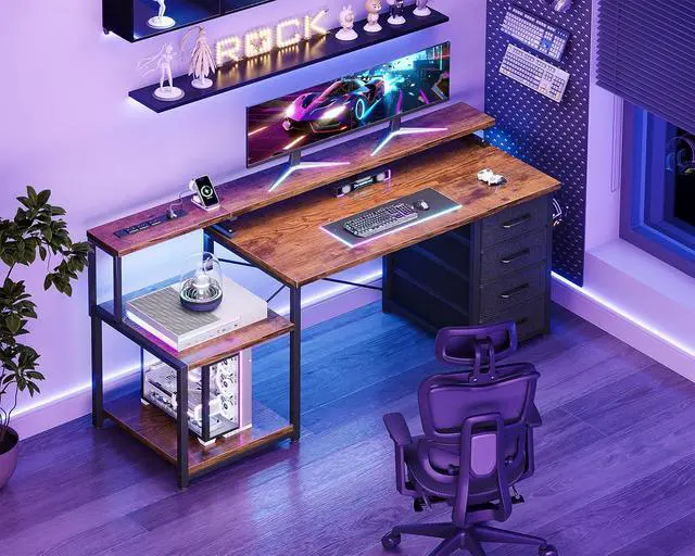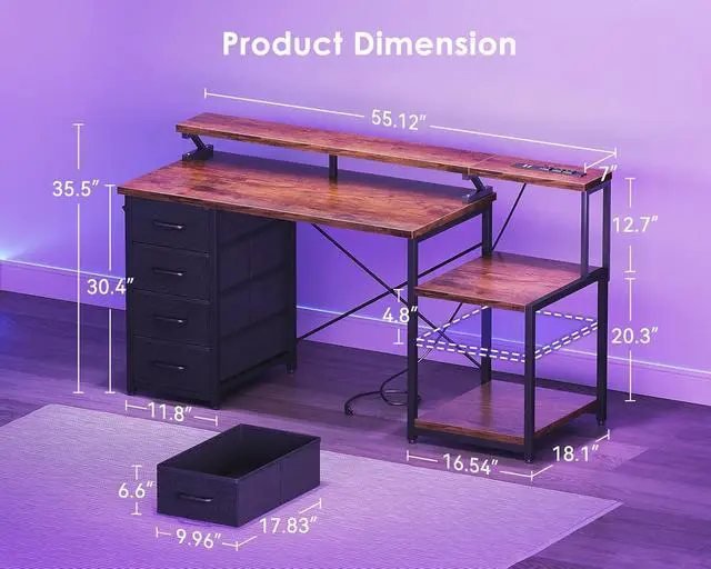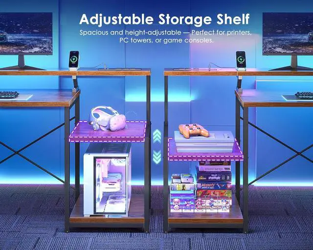Versatile Application Scenarios:Perfect for diverse user needs, this multifunctional desk serves as an ideal centerpiece for home offices, providing structure for remote work. Gaming enthusiasts benefit from the dual monitor support and ambient lighting for immersive experiences. Creative professionals appreciate the organized storage for projects, while students find the spacious surface ideal for study materials and technology integration.