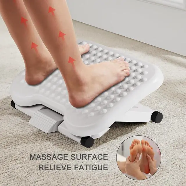 HUANUO Adjustable Desk Footrest, Foot Rest for Under Desk at Work with Massage, Adjustable Foot Stool with 3 Height Position & 30 Degree Tilt Angle Adjustment for Home, Office, White