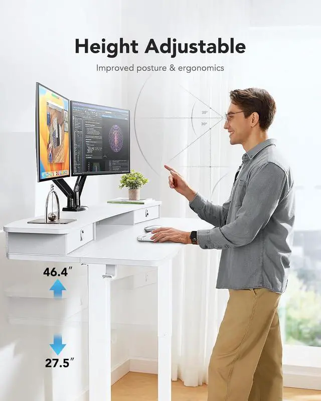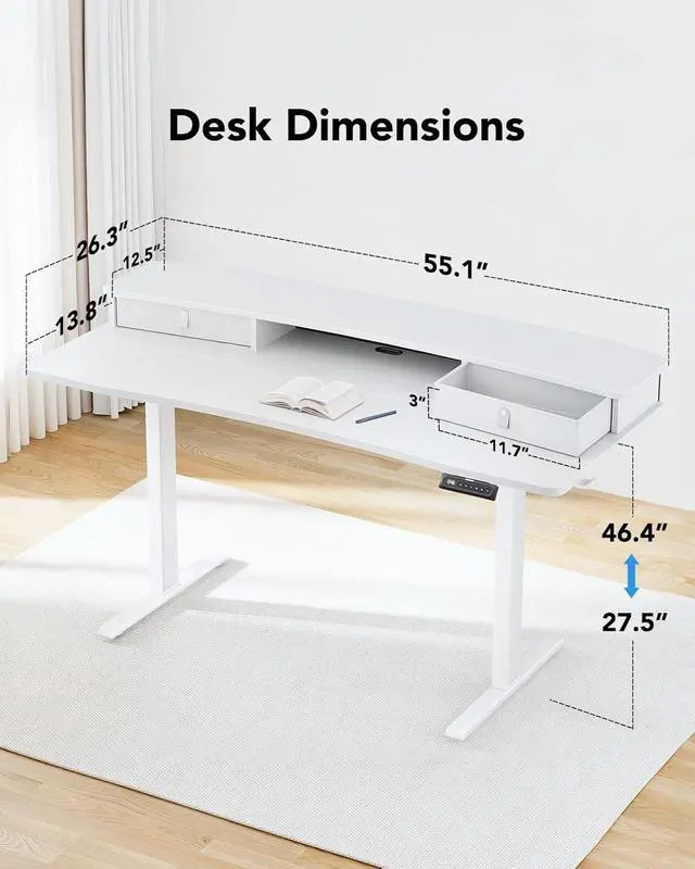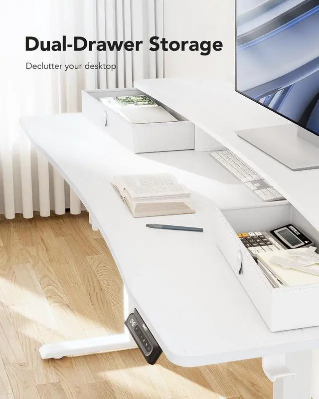 Efficient Desktop Organization: The electric standing desk maximizes organization with two desktop drawers to store items out of sight and an open storage cubicle for your keyboard, mouse, and other accessories. With a spacious 48 desktop, you also have plenty of room to display your favorite decorations and collectibles.