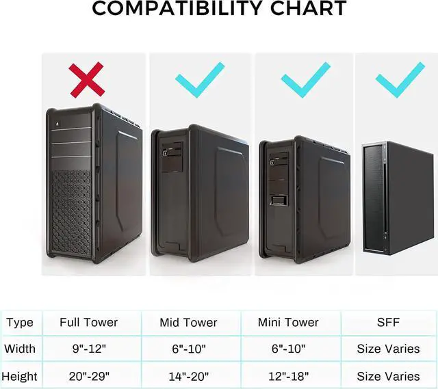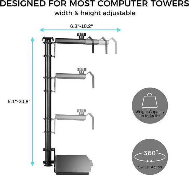 Adjustable CPU Mount: Universal computer tower fits most PC cases with adjustable width from 6.3" - 10.2" and adjustable height from 0 to 20.5" with more adjustable range than others. Supports weights up to 44 lbs.