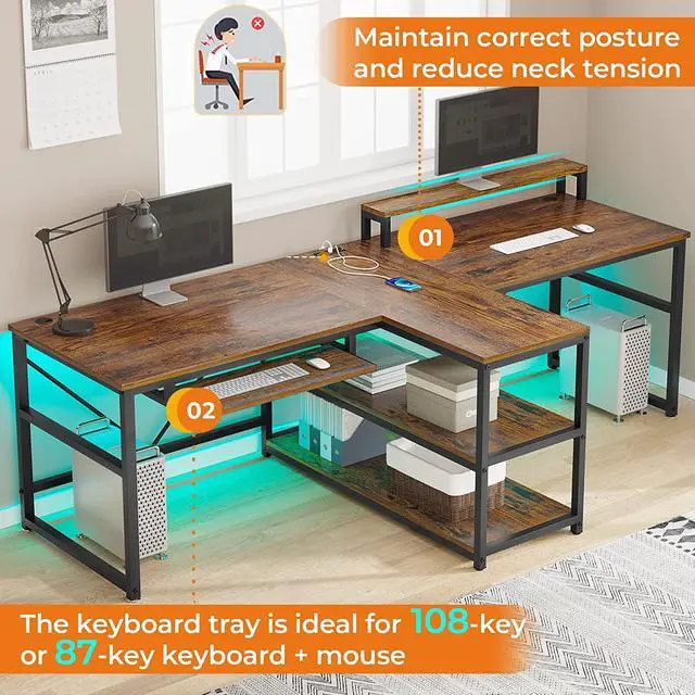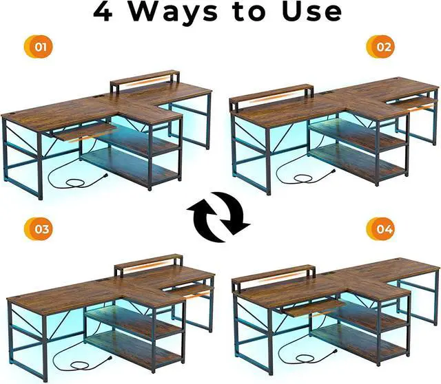 What can you get? 2 person desk + printer stand with storage + 94.5" LED light + power strip with USB interface + keyboard tray + monitor stand. This multifunctional two person desk is convenient for 2 people to use at the same time, and can communicate at close range without disturbing each other. Perfect as computer desk, 2 person desk, home office desk, gaming desk, office desk.