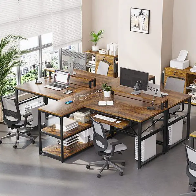 Two Person DesignThe 94.5 Inch - Length size allows 2 person to work side by side without compromising on space. Double working space with a 2-layer storage shelf in the middle. Perfect for your classmates, friends, workmate and you to study, play games and work together. This computer desk effortlessly blends with any furnishings in modern style.