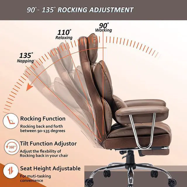 With 360° Swivel - Height Adjustable Mechanism - Back Angle and Tilt/Sway System to Swing Back and forth at any angle up to 135°. The tilt tension knob below controls the tension of the tilt, which you can adjust to your personal preference.