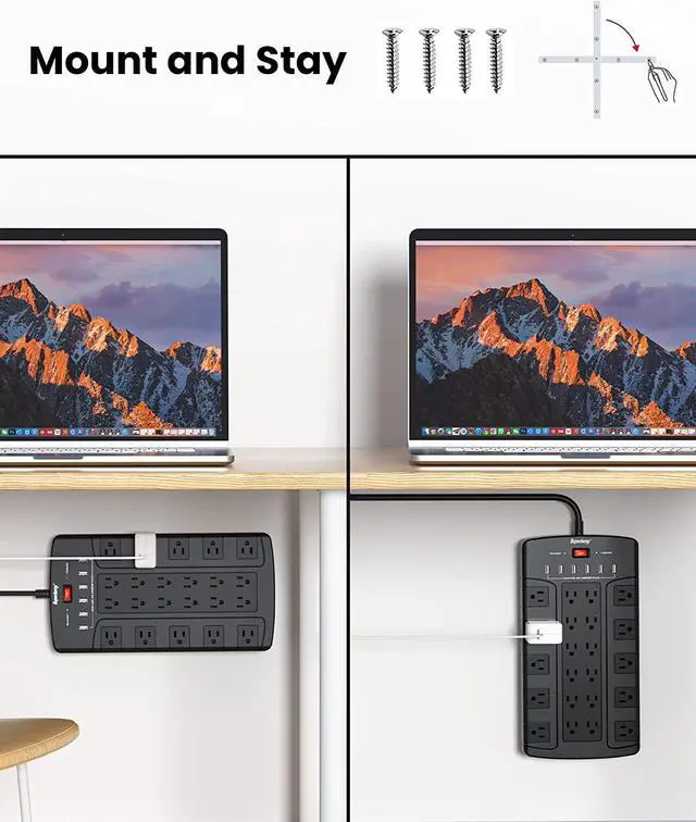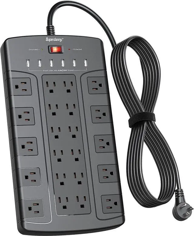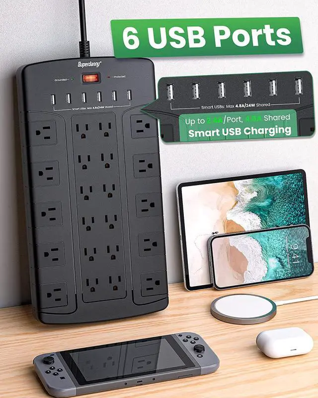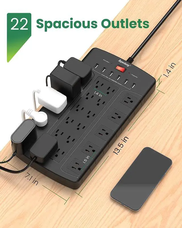 22 grounded 3-prong outlets and 6 USB ports power all devices at one location, greate for charging multiple devices like game systems, TV, surround sounds, router, charger stations for controllers, phones, tablets, laptops.