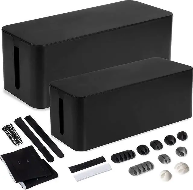 Cable Cable Management Box, 2 Pack - Cord Organizer and Hider for Wires, Power Strips, Surge Protectors & More - Includes Cable Sleeve, Hook and Loop Keepers, Zip Ties & Clips
