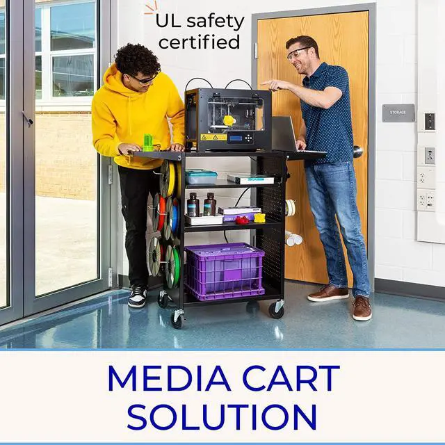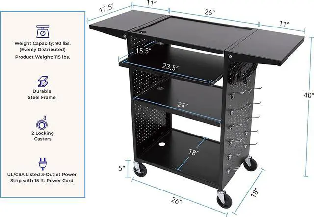 This mobile workstation is designed for years of dependable use as a printer cart, projector cart, or computer cart. The Stellar cartssturdy metal framehelps protectitagainst scuffs and scratches, while supporting 90 pounds (evenly distributed)