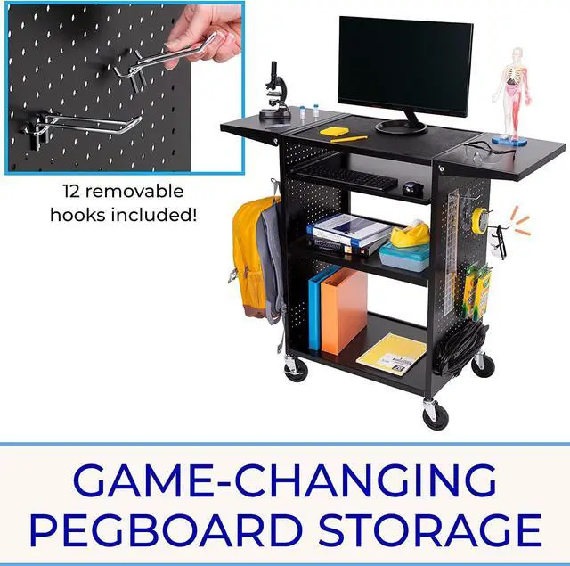 Its time to rethinkthe traditionalAV cart. Weve reinvented the classic AV cart by adding the convenience of easy-access, movable pegboard storage to create the all-newStellar AV cart! Each Stellar Cart comes with pegboard siding an 12 adjustable peg hooks.