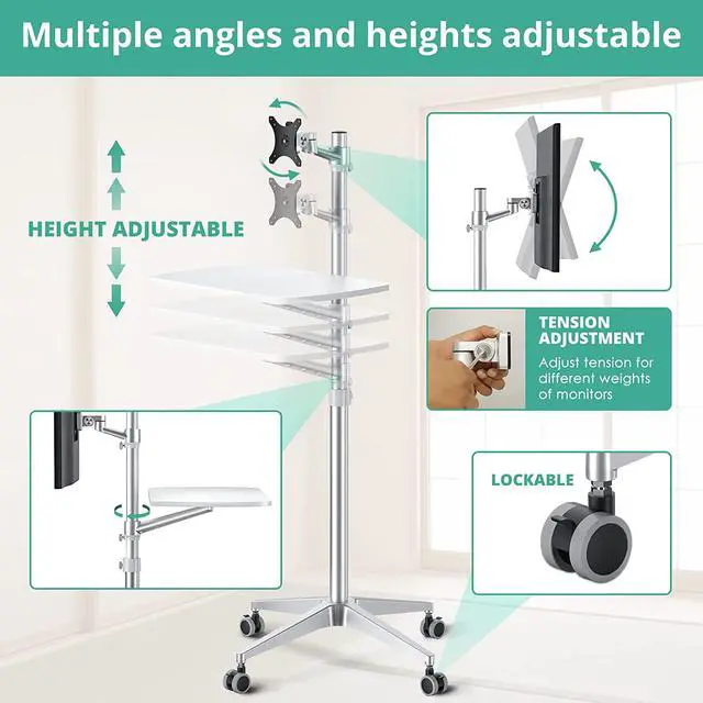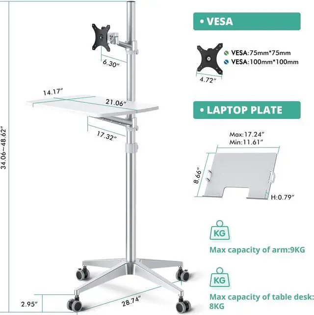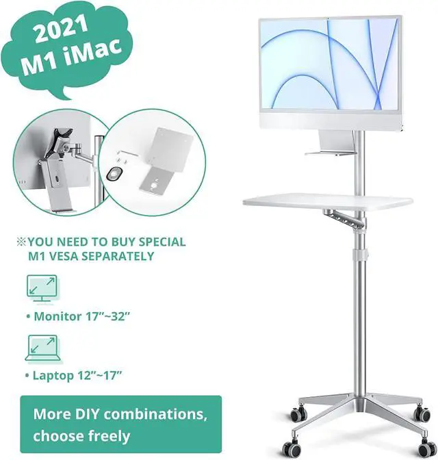 Consise Design& SturdyAll in one integration design, CNC precision machining, matt silver finish frame, a magnificent mobile mount for iMac users. Original 4 feet design, which can ensure the stability of the mobile stand on the basis of mounting various equipments.