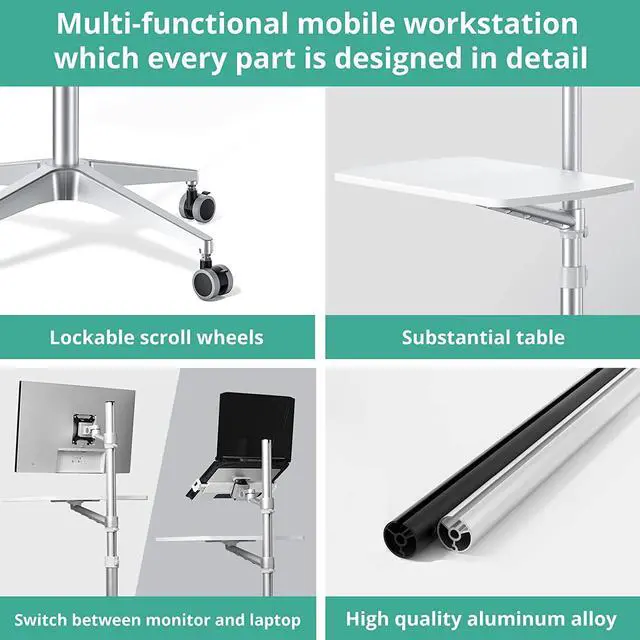 Easy Installation& Upgraded AccessoriesOnly a few steps to assemble, easy arm installation with lockable wheels, free to go forward and backward. Desk board with 0.6" thinckness is water-resistant, coatingwhite finishhelps protect againstscratcheswhileitsaluminum alloy frame ensuresa stable using experience.