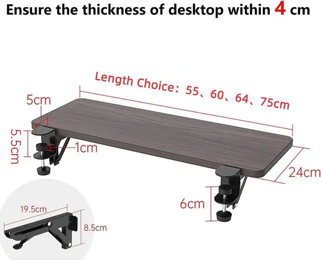 Ergonomics Desk Extender Tray, 25.2"x9.5" Punch-Free Clamp on, Foldable Keyboard Drawer Tray, Table Mount Arm Wrist Rest Shelf, Computer Elbow Arm Support Walnut