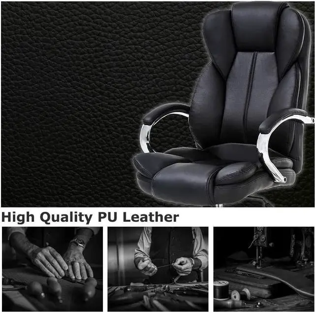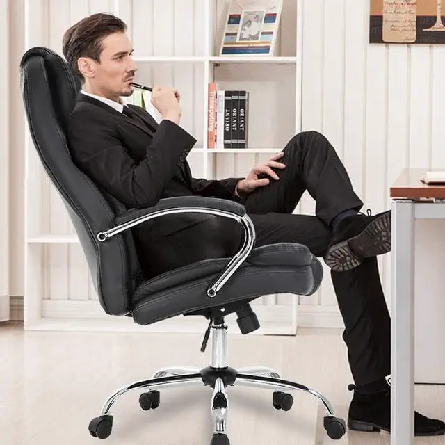 Office chair with thickness padded seat made of PU leather and padding sponge, oil and water resistance provide extra comfort for daily use, and help keep your back supported and your body properly alignedan important component when sitting for prolonged periods of time.