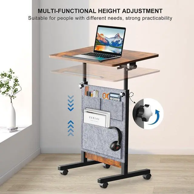 Mobile Standing Desk with Storage Bag Small 16 x 24 in, Portable Rolling Stand Up Table with Wheels, 360° Flip Laptop Computer Desk for Home Office, Rustic Brown