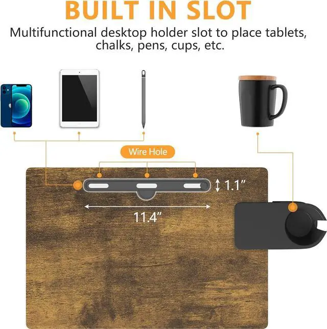 Multifunctional desktop holder slot to place tablets, chalks, pens, cups, etc