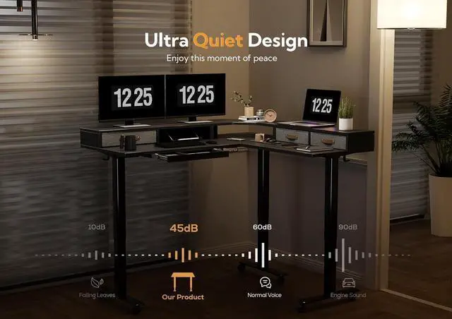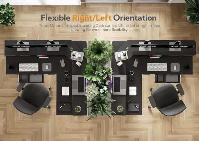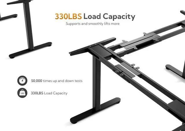 Electric Lift System: The triple motor L shaped standing desk contains an industrial-grade steel frame that is able to support up to 330 lbs.