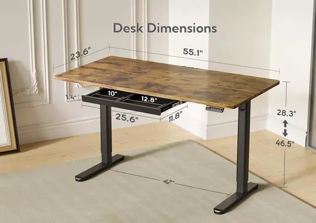 The electric standing desk comes with 2 hooks, and a plastic drawer, which provides more home office desk usage possibilities.