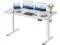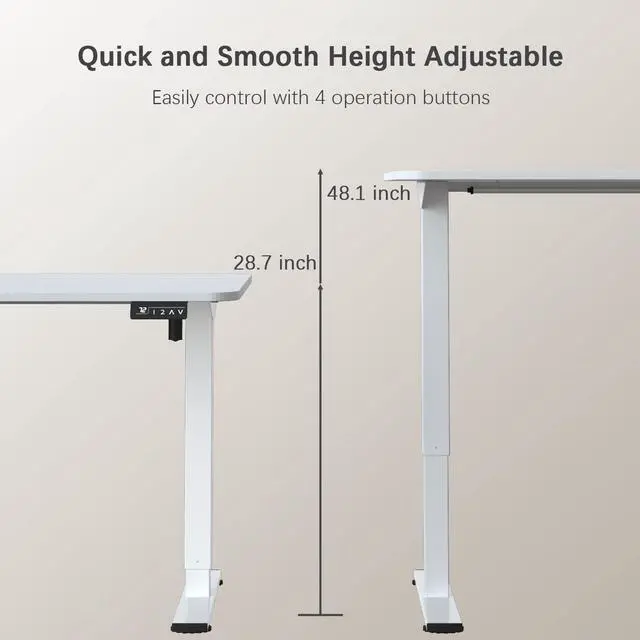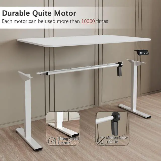 The desk legs are box frame structured, though it is made of steel material, it is not that heavy, offering much stableness and sturdiness in use. There are feet at the bottom of the desk legs, to balance the desk on ground. The wide T-shaped foot design makes the table maintain good stability even when used at the highest height.