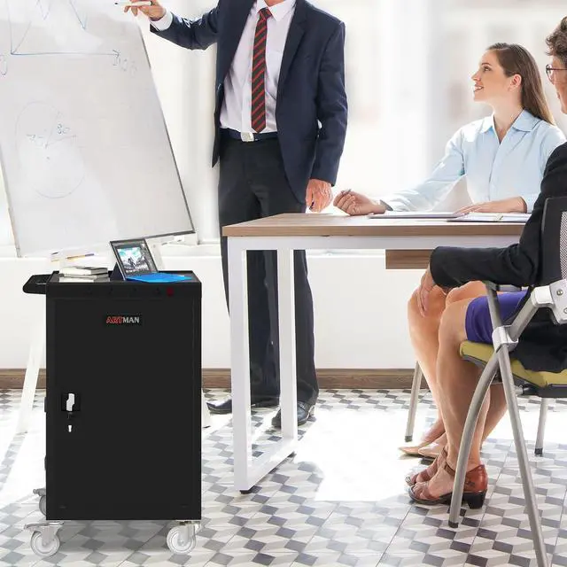 Z-shaped Handle is easy to twist, charging cart has a locking system for front and rear doors, you can always trust it to keep your devices safe.