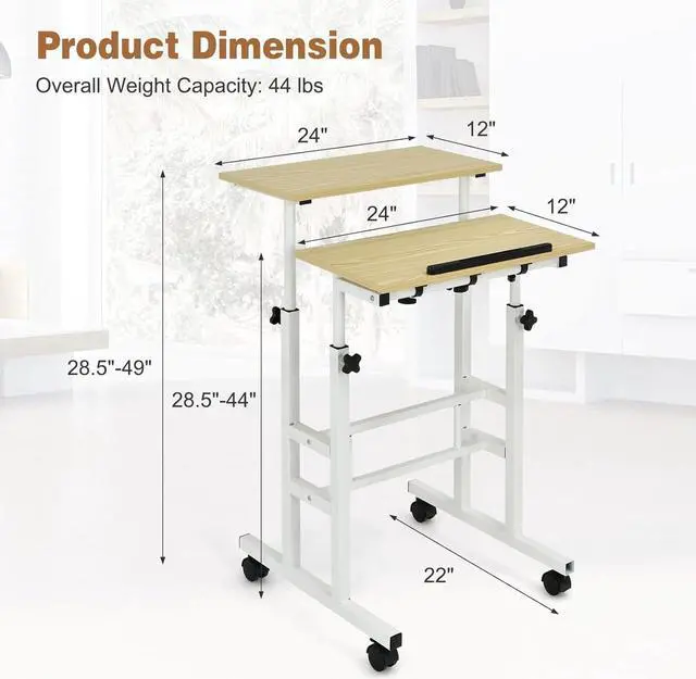 Crafted from thick engineered wood boards and sturdy steel frame, this mobile computer desk ensures strong bearing capacity. Wood grain surface of the desktop is wear-resistant and smooth, which is easy to clean with damp cloth.