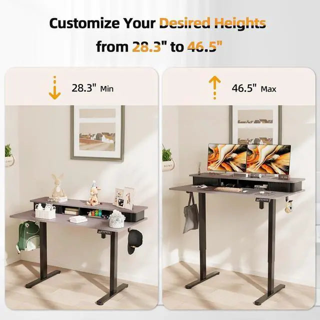 Smooth Height Adjustment: The adjustable desk has 3 preset buttons to customize your desired heights from 28.3 inches to 46.5 inches with low noise under 50 dB