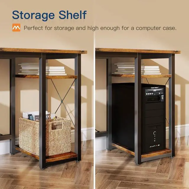 Made of sleek Wide desktop with storage shelf equipped. You will have plenty of surface space for writing, computer work and other home office activities. 2-layer shelf gives you extra storage space, plenty of space for books, files or other items.