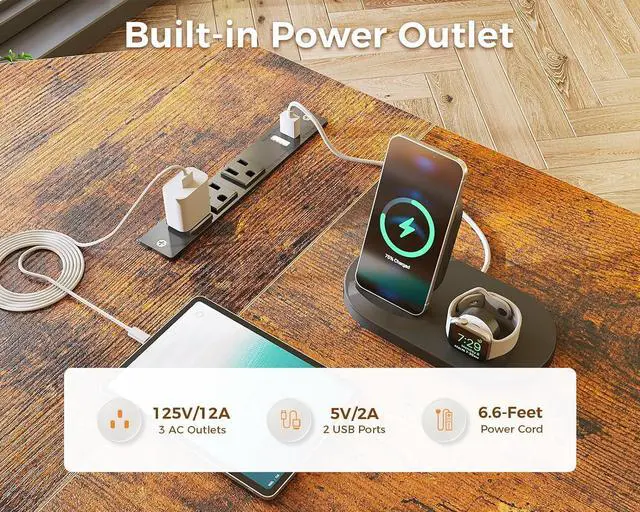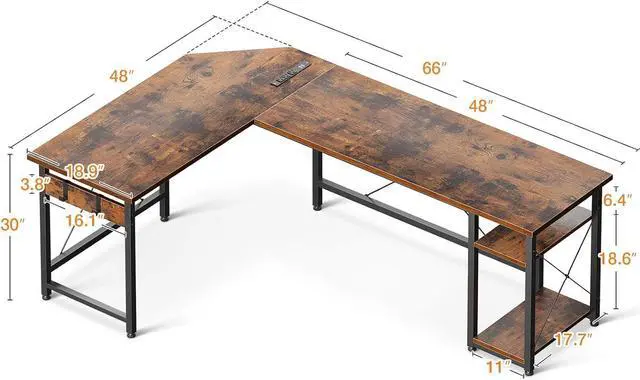 The L Shaped Computer Desk comes with a built-in power outlet, provides 3 AC outlets and 2 USB ports. With this home office furniture, now you can charge multiple devices easily and safely!