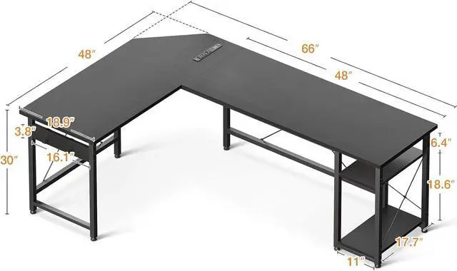 The L Shaped Computer Desk comes with a built-in power outlet, provides 3 AC outlets and 2 USB ports. With this home office furniture, now you can charge multiple devices easily and safely!