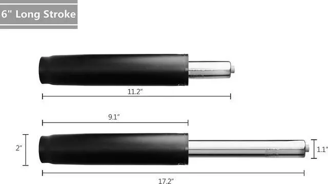 6" STROKE FOR ADJUSTING CHAIR HEIGHT: Minimum length: 11.2 inches; maximum length when fully extended: 17.2 inches; adjustable range: 6 inches