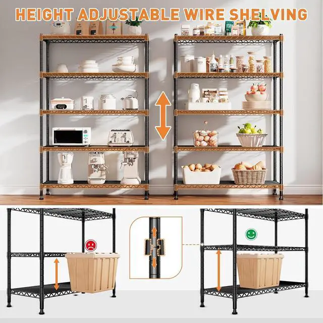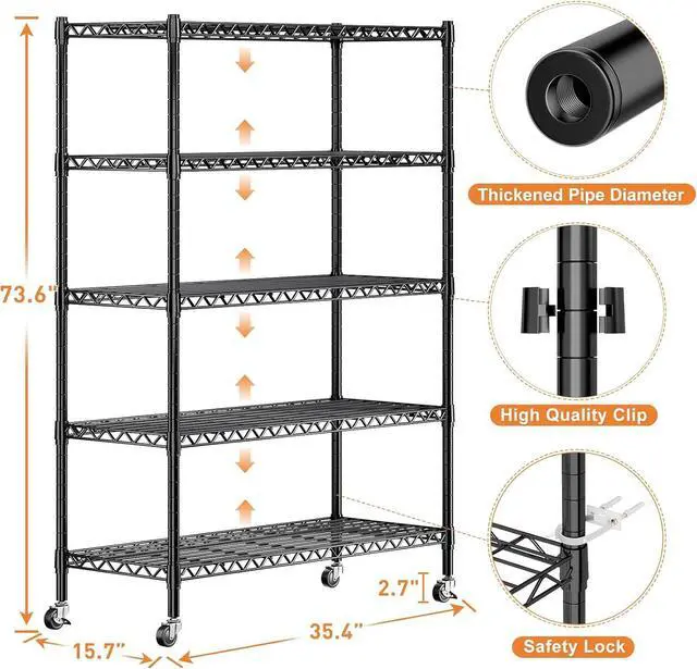 Made of metal, with excellent rust resistance and oxidation resistance. We provide aesthetically appealing powder-coated shelves to minimize wear and tear. Enables you to use it longer. Metal storage shelves, according to the size of the item, the height of each layer can adjustable by moving the clips up or down to adjust shelf heigh