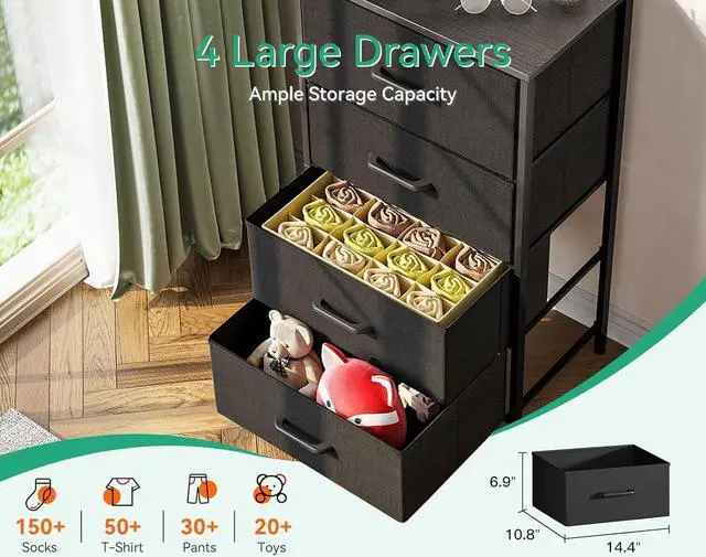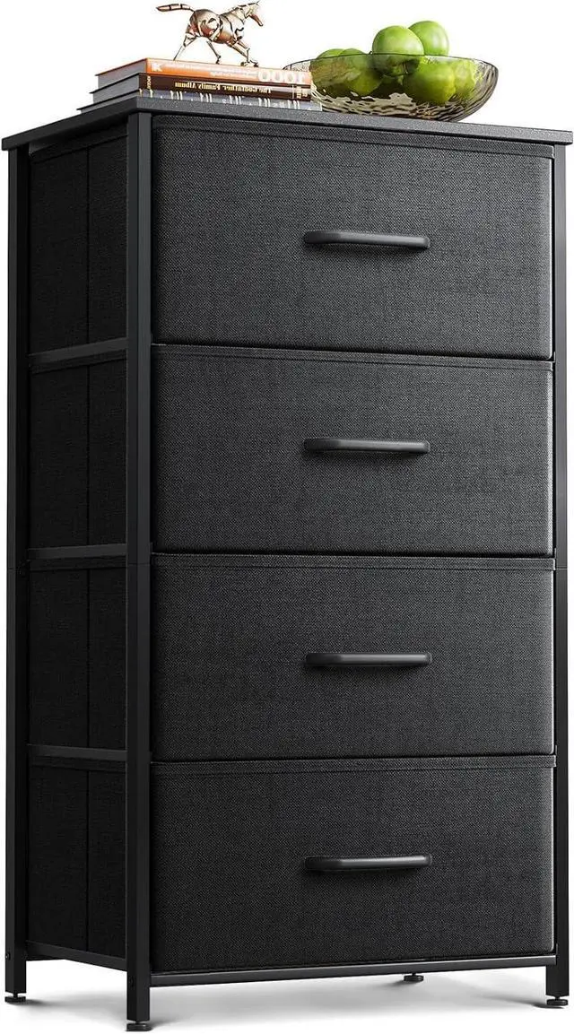 Dresser for Bedroom with 4 Storage Drawers, Small Dresser Chest of Drawers Fabric Dresser with Sturdy Steel Frame, Black