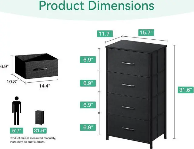 • Please pay attention that it is a small dresser with dimensions of 11.73"D x 15.74"W x 31.77"H, which is designed for small spaces