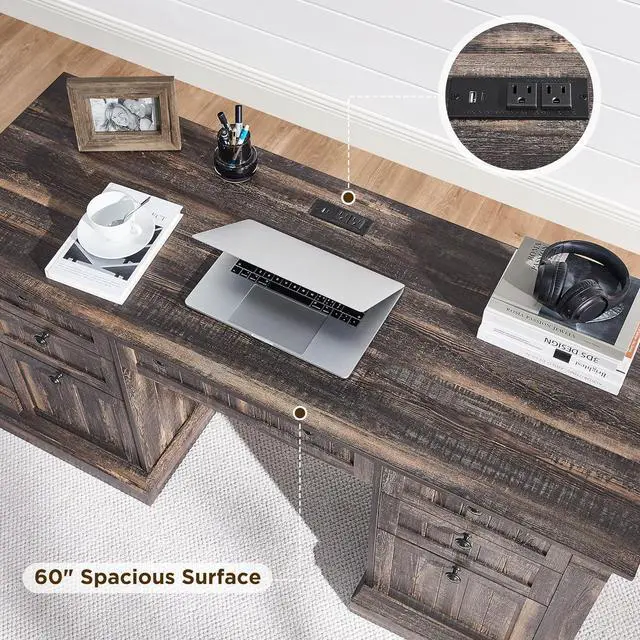 Spacious Work Surface for Productivity Measuring 60 inches in length, this desk offers an expansive work surface that can easily accommodate dual monitors, a laptop, paperwork, and other essentials. Its spacious design makes it versatile for work or study, allowing you to spread out and stay productive. Perfect for both home offices and study areas, this desk brings the ideal balance of function and style to any room.