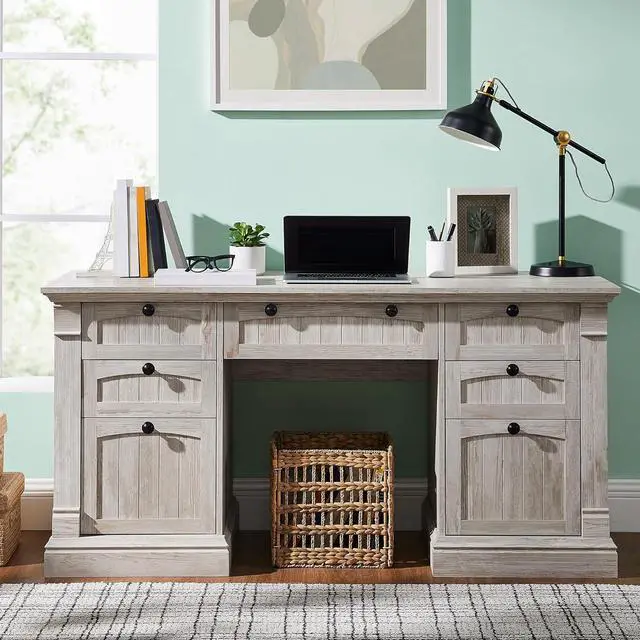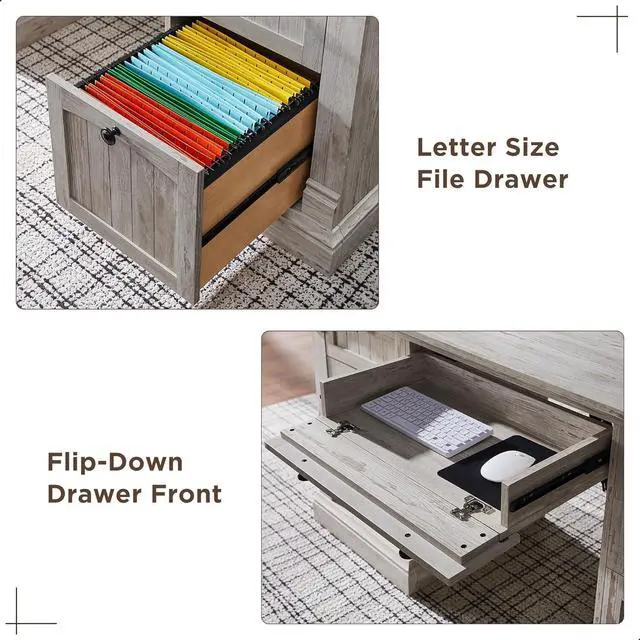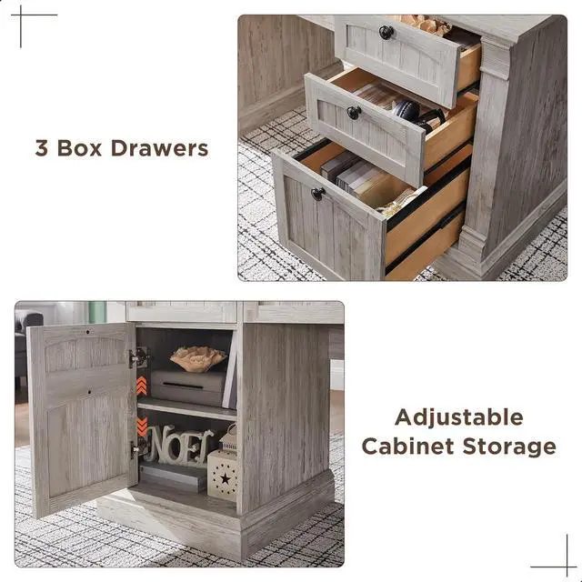 Generous Storage to Keep Your Space Organized The desk includes a large file cabinet that fits letter-size documents, making it easy to organize important paperwork. Additional 3 standard drawers offer plenty of room for office supplies, stationery, and personal items. A storage area behind the door can hold a vertical CPU tower, and an adjustable shelf allows you to customize your credenza with storage.