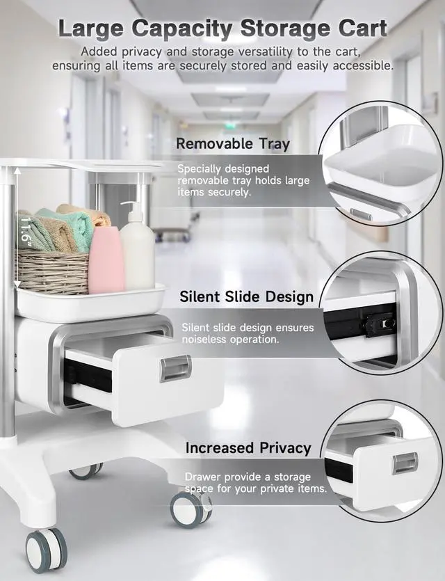 Multi-environment application: Designed for commercial and home use, This multi-functional cart can be used in hospitals, beauty salons, dental offices, and private homes. It is ideal for storing and organizing all kinds of medical and beauty instruments as well as various other items. The carts are popular with professionals. Whether for professional use or everyday tasks, this cart increases your efficiency, making it an indispensable tool for your work and daily life!