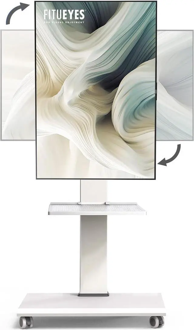 • Adjustable TV Stand with Wheels: The rolling TV stand is height adjustable, you can adjust the height you want in a range of 48.5"-60.3".Thanks to the rotation function of the panel, FITUEYES portable TV stand on wheels supports vertical and horizontal 90 degree screen rotation and swivel 20 degree left/ right