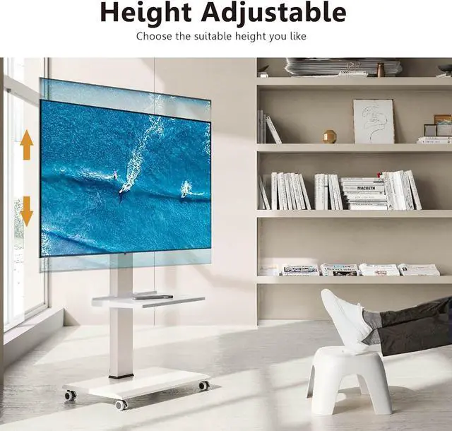 • TV Stand with Wheels: Silent and smooth wheels with locks allow you to move the TV cart from room to room effortlessly. It's easy to use in the office or at home, also a great choice as a outdoor portable tv stand