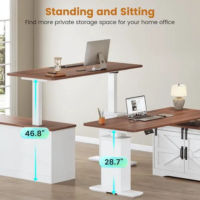 What You Get Create a multifunctional workstation with this l shaped standing desk, equipped with drawers, filing cabinets, storage cabinets, power outlets, and a lifting motor to meet all your needs. The L-shaped design maximizes corner space and expands storage capacity.